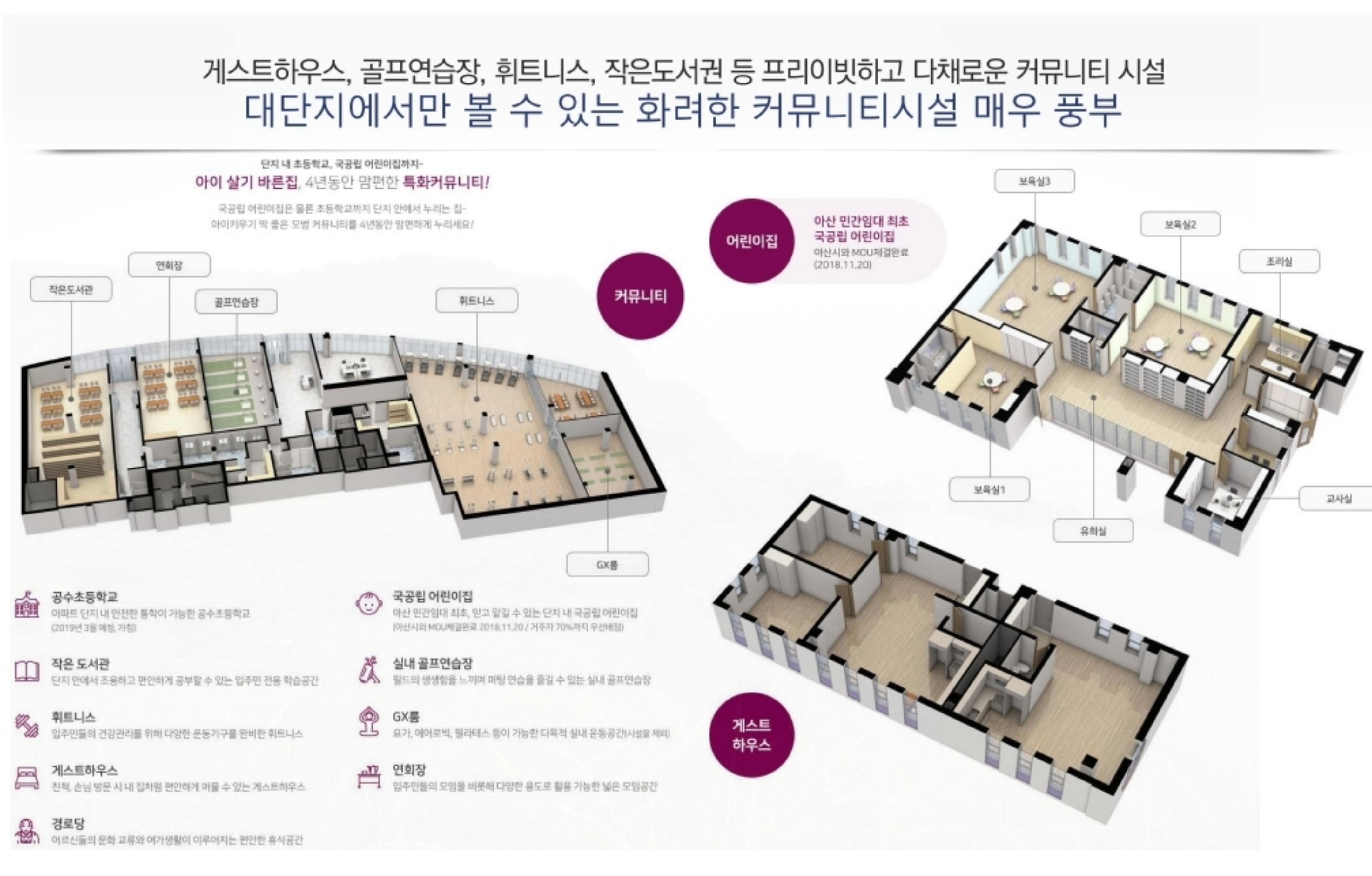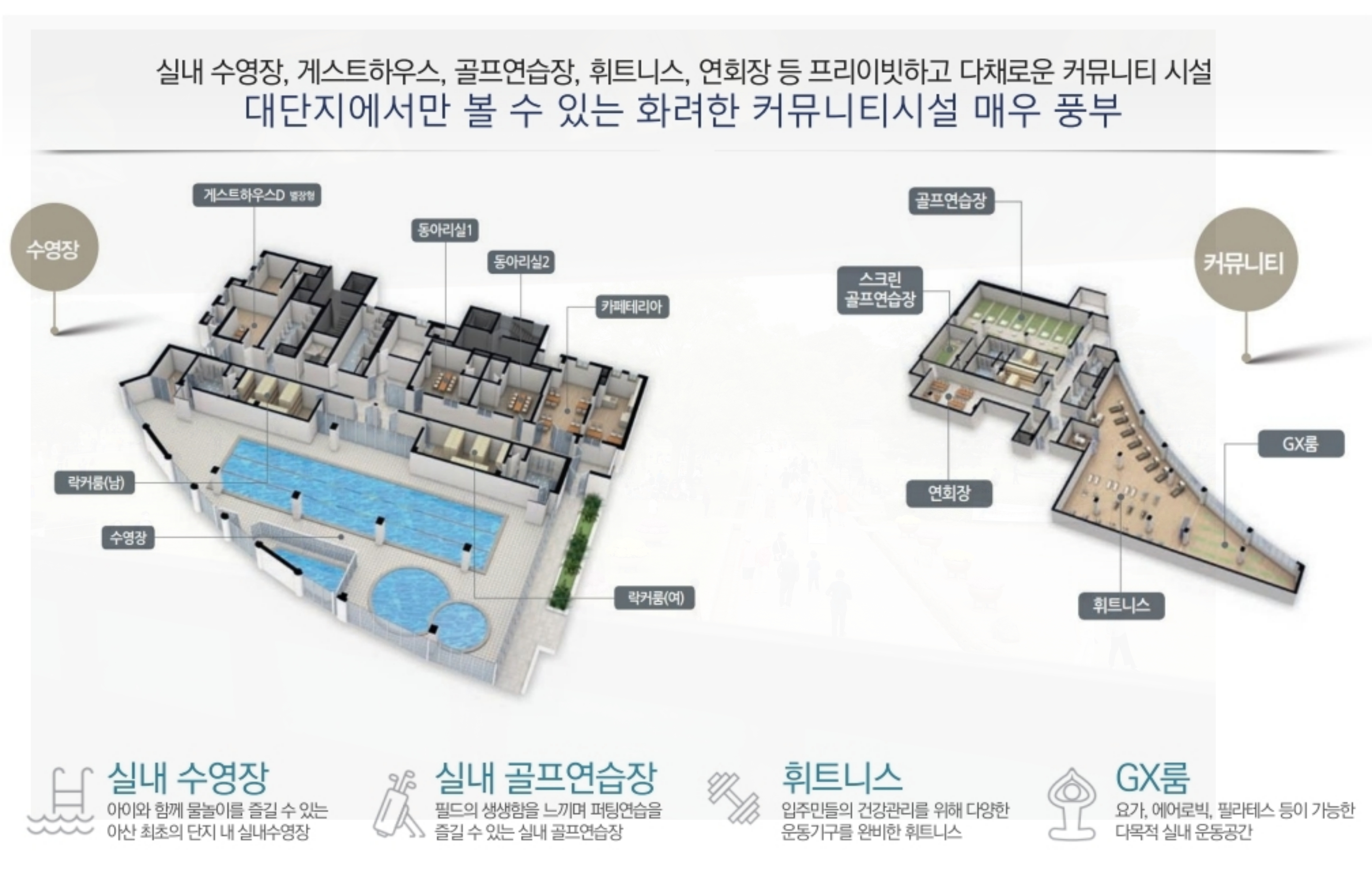 특징: 아산 최초의 실내 수영장을 품은 프리미엄 커뮤니티