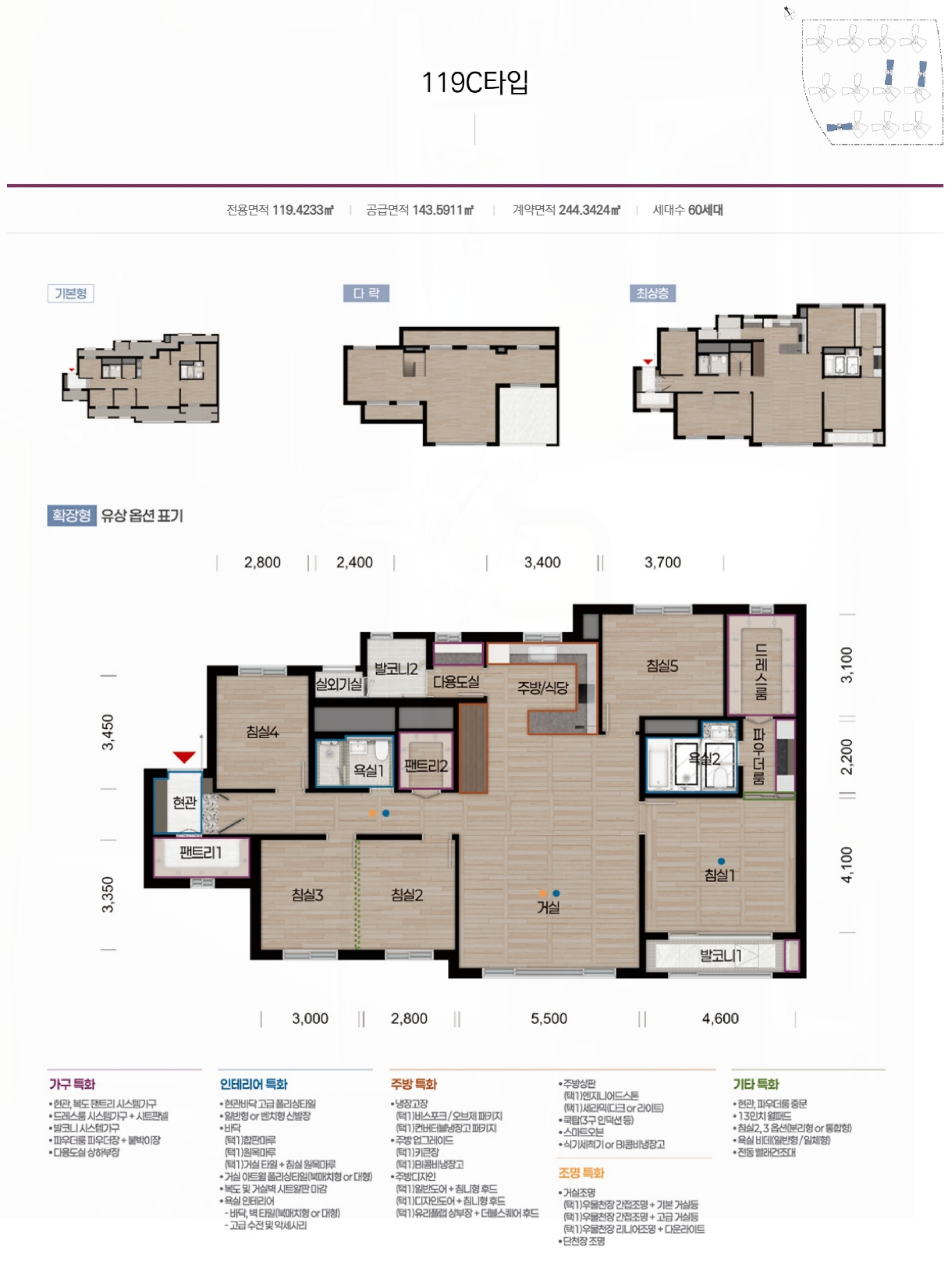 A~C타입은 방이 다섯 칸이지만 2칸을 하나로 합쳐서 사용이 가능한 가변형 구조라는 점에서 더욱 호감도가 상승 중이라고 하네요.