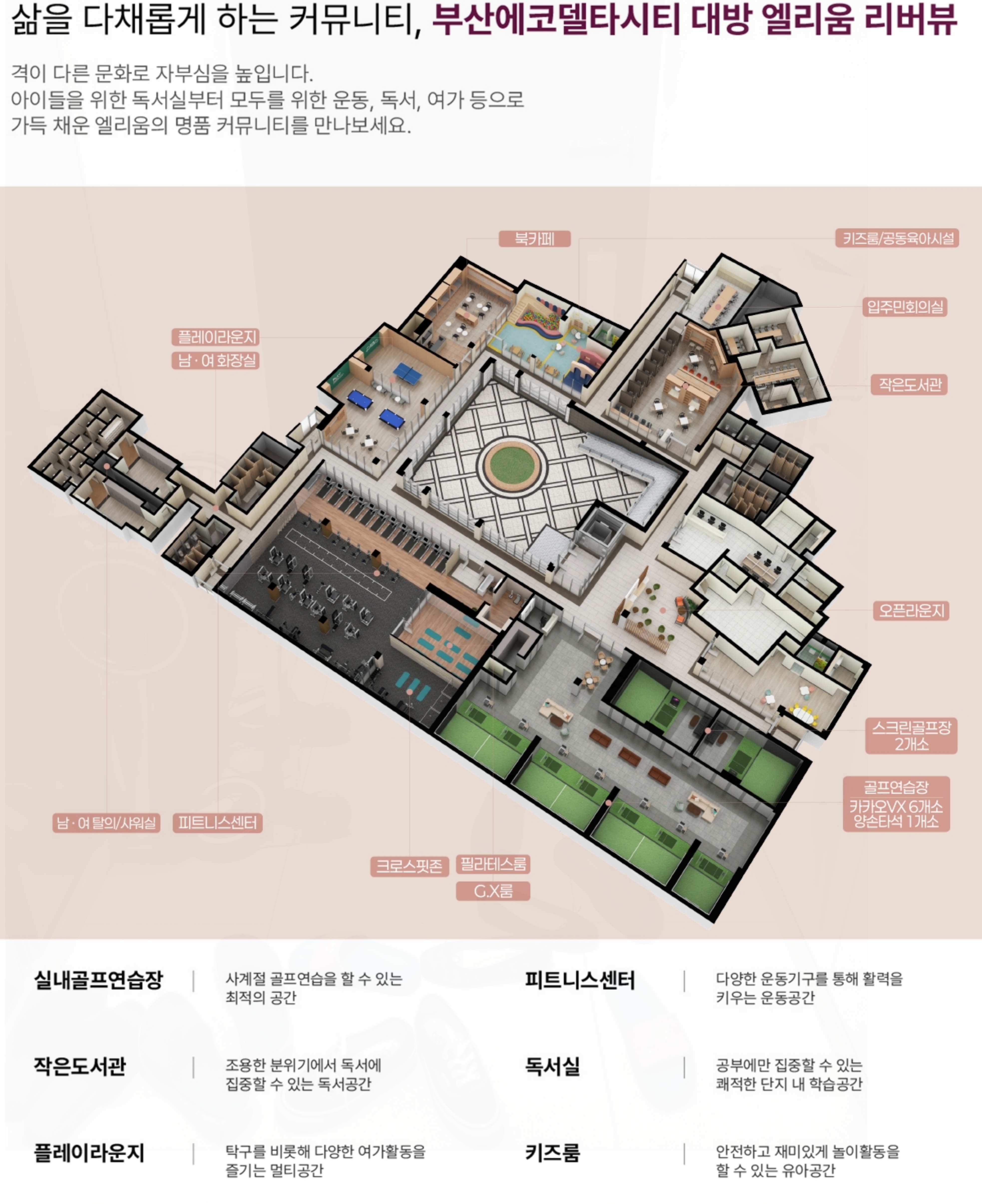 부대시설도 입주민들이 다양한 삶을 영위할 수 있게 문화, 오락, 체육활동을 포함해 아이들의 육아, 교육적인 부분까지 모두 설계가 되어 있기 때문에 더욱 주거 만족도가 향상될 것으로 보입니다.
