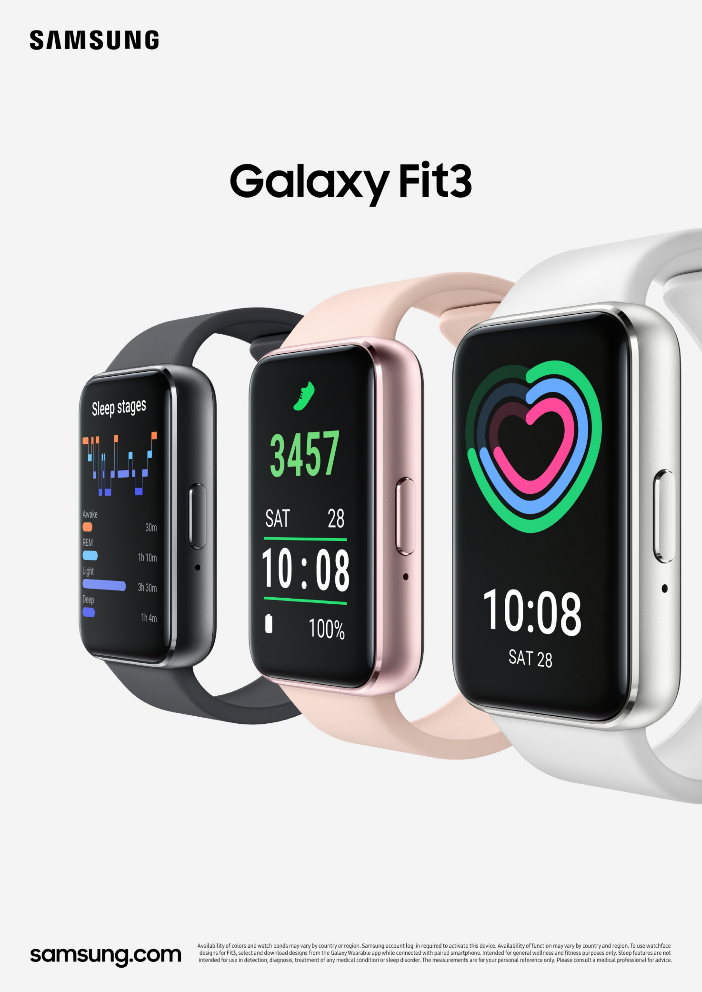 갤럭시 핏3는 그레이·실버·핑크 골드 3가지 색상으로 구주, 아시아, 중남미 등의 일부 국가에서 23일부터 순차 출시된다. 국내에서는 향후 삼성닷컴 등을 통해 출시될 예정이다.