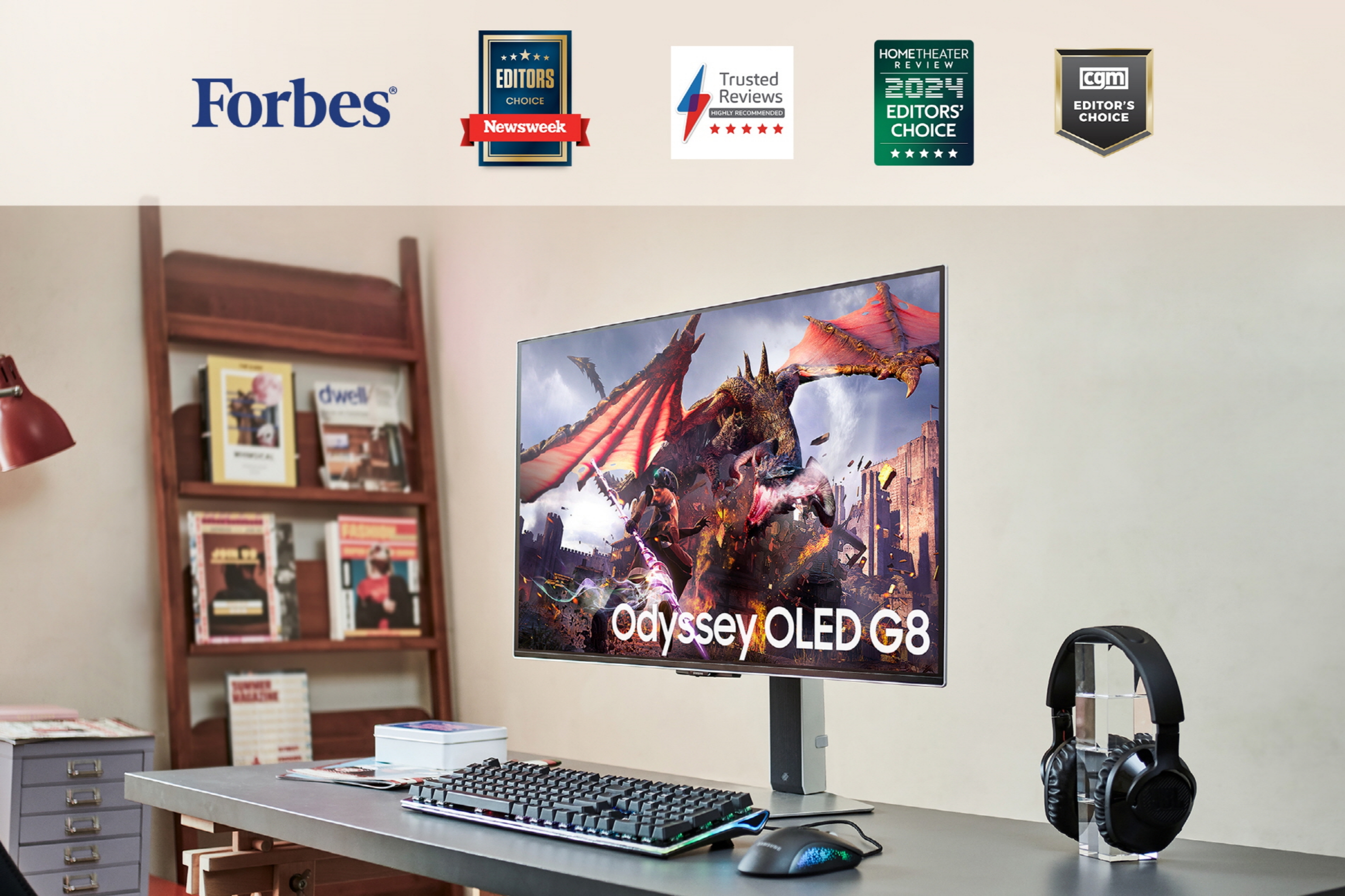 미국의 시사 일간지 뉴스위크(Newsweek)도 오디세이 OLED G8을 빠른 응답속도를 갖춘 4K OLED 모니터가 스마트 TV 기능까지 탑재했다고 호평하며, 2024 에디터스 초이스(Editor's Choice)에 선정했다.