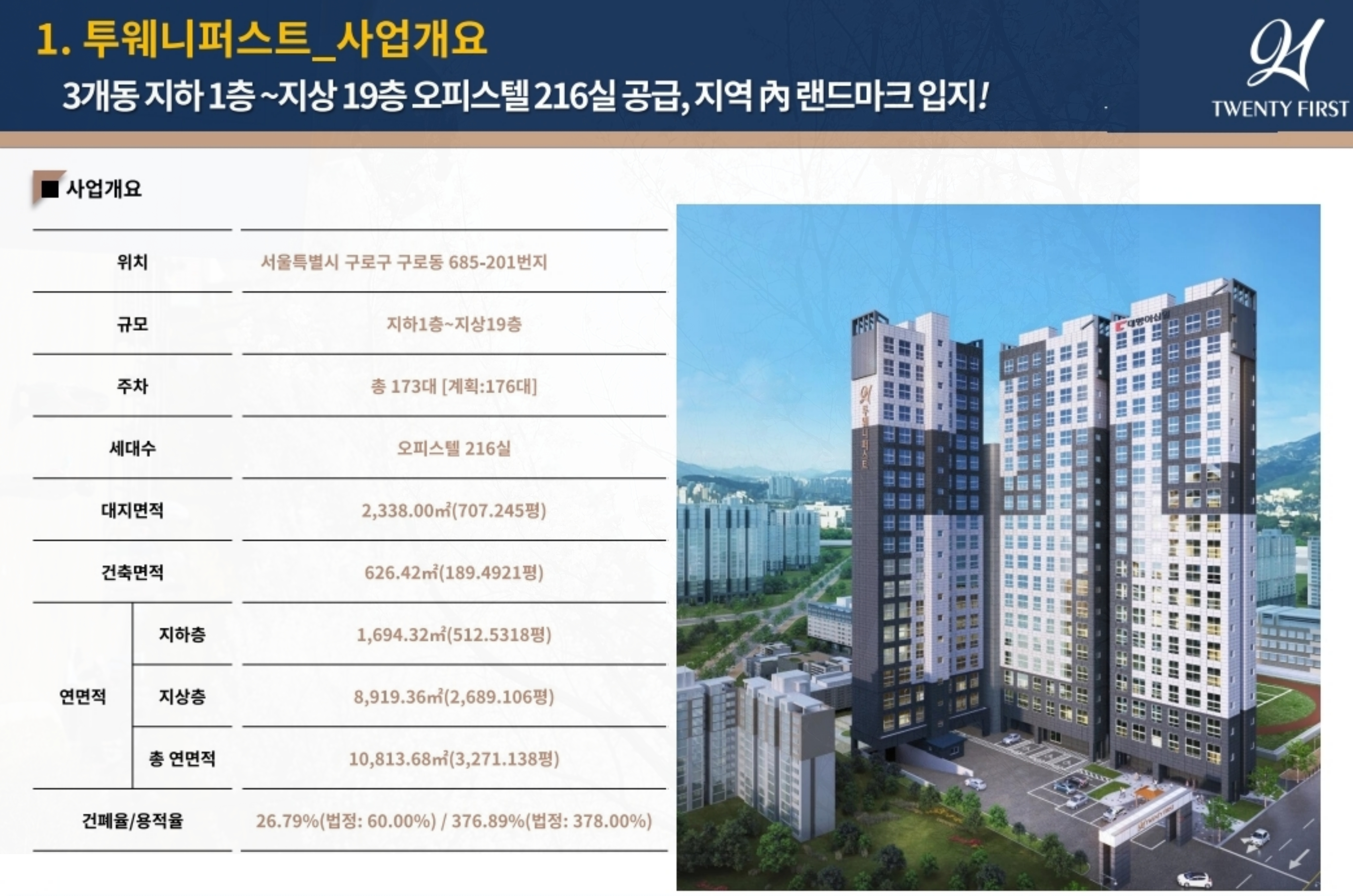 현장 위치는 구로동 685-201이며, 건축 규모는 지하 1층에서 지상 19층의 높이로 조성됩니다.