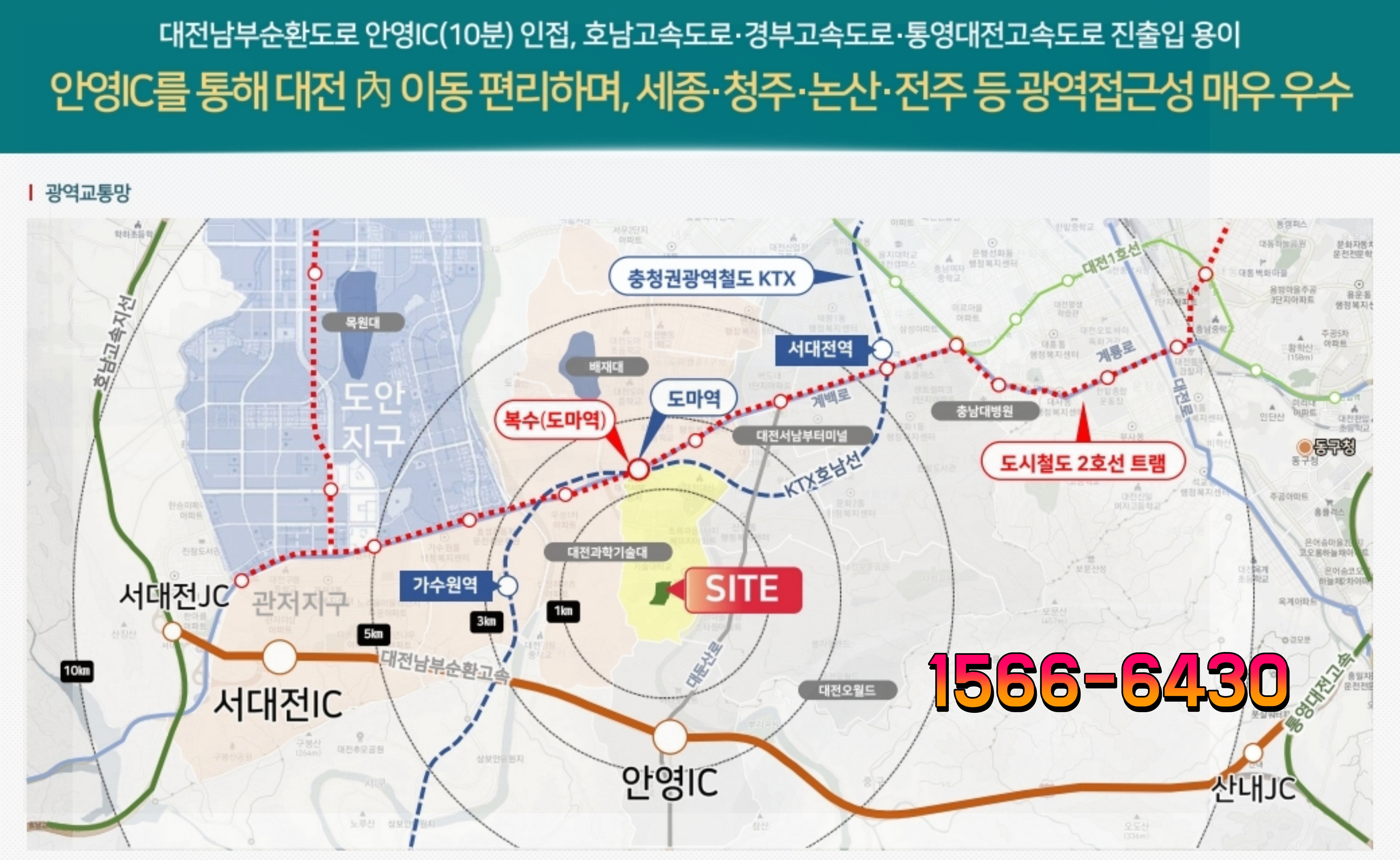 광역 도로망: 대전남부순환 고속도로 안영 IC와 인접해 있어 경부고속도로, 호남고속도로, 대전통영 고속도로 등 주요 고속도로망으로의 진출입이 매우 용이합니다.