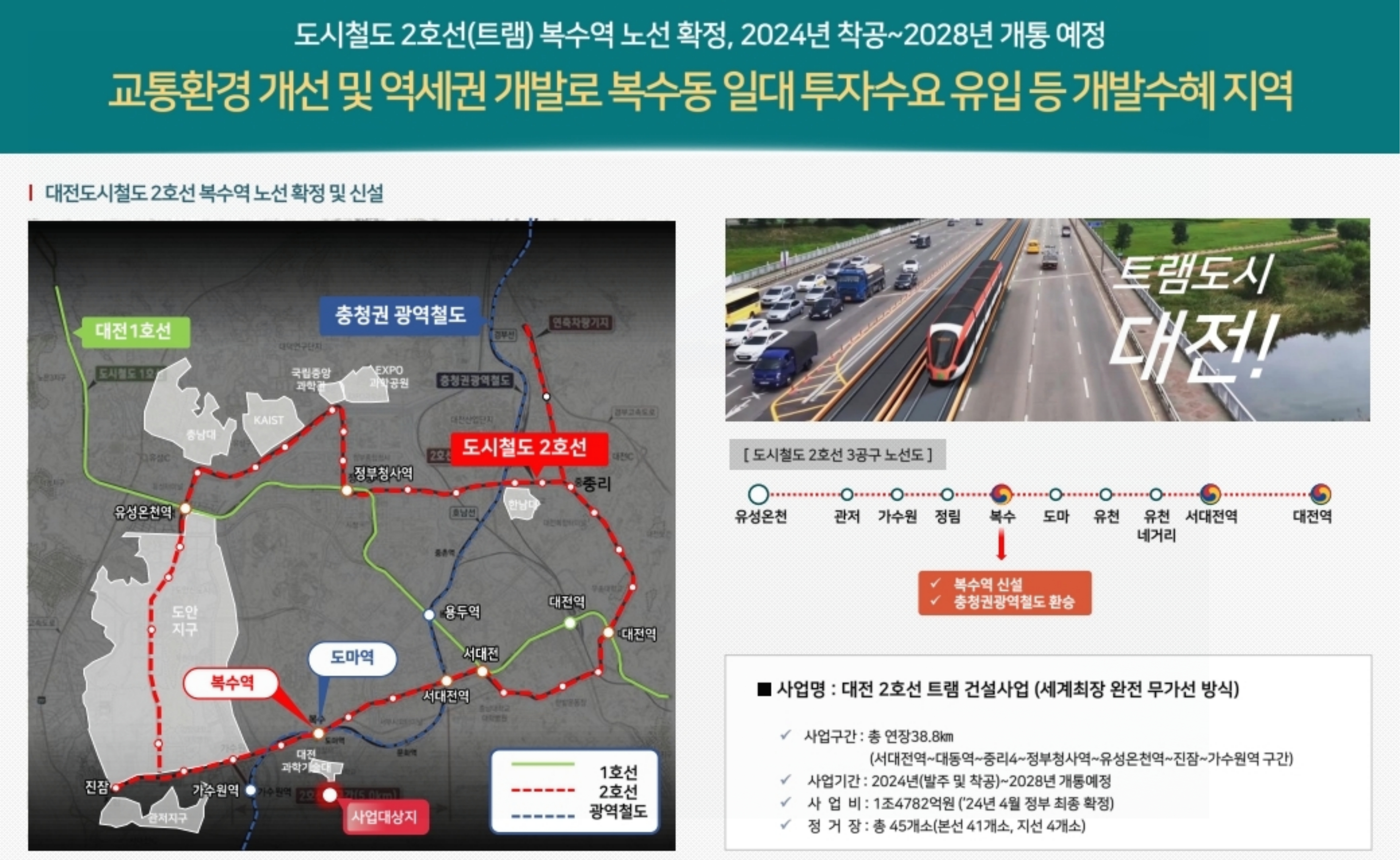 미래 철도망 호재: 대전 도시철도 2호선 트램 개통 시, 복수역과 도마역을 모두 이용할 수 있는 더블 역세권 입지를 갖추게 됩니다.