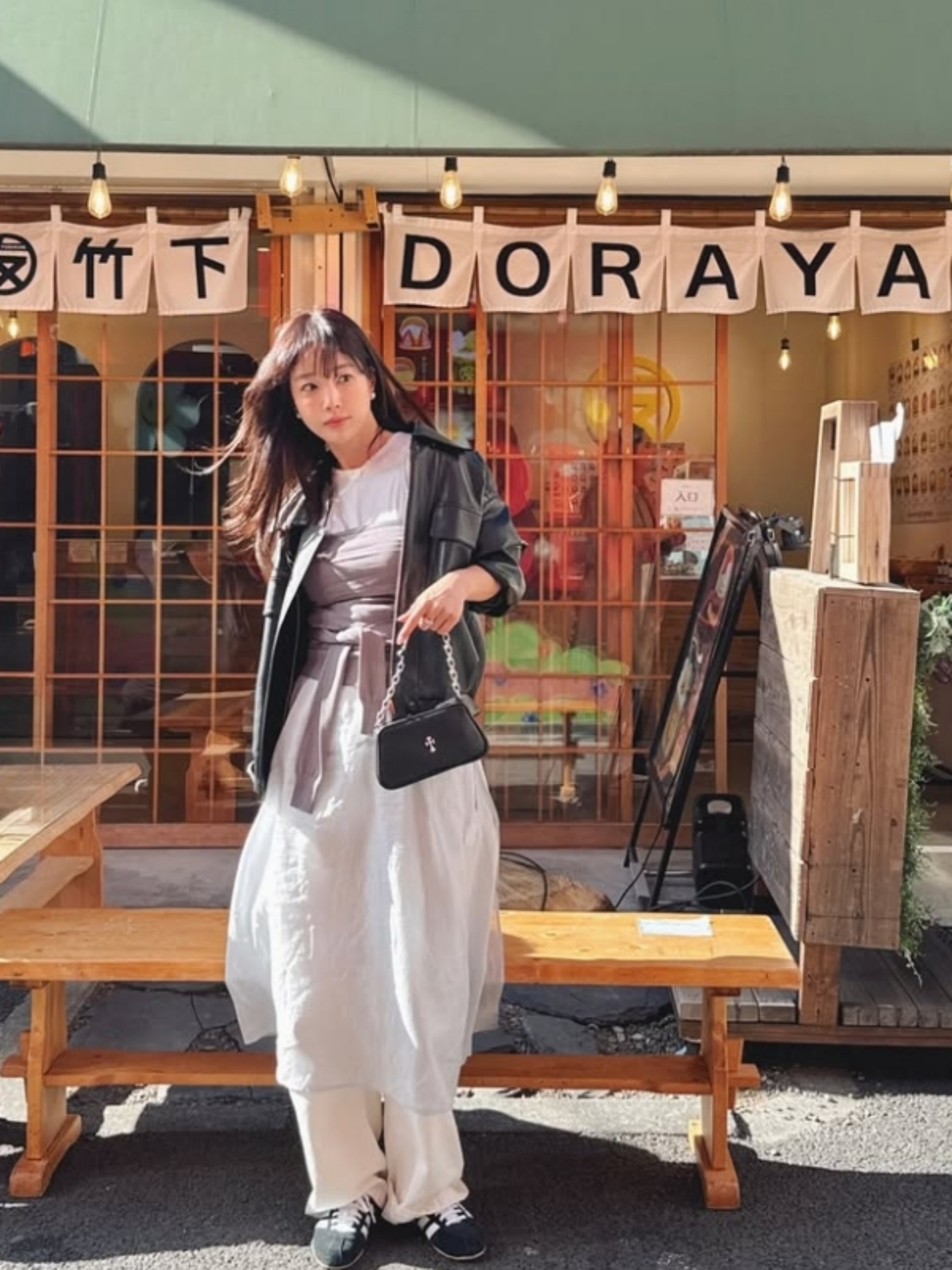 화이트 컬러에 하늘하늘 가볍게 느껴지는 원피스와 팬츠, 운동화 그리고 봄버자켓까지 ...