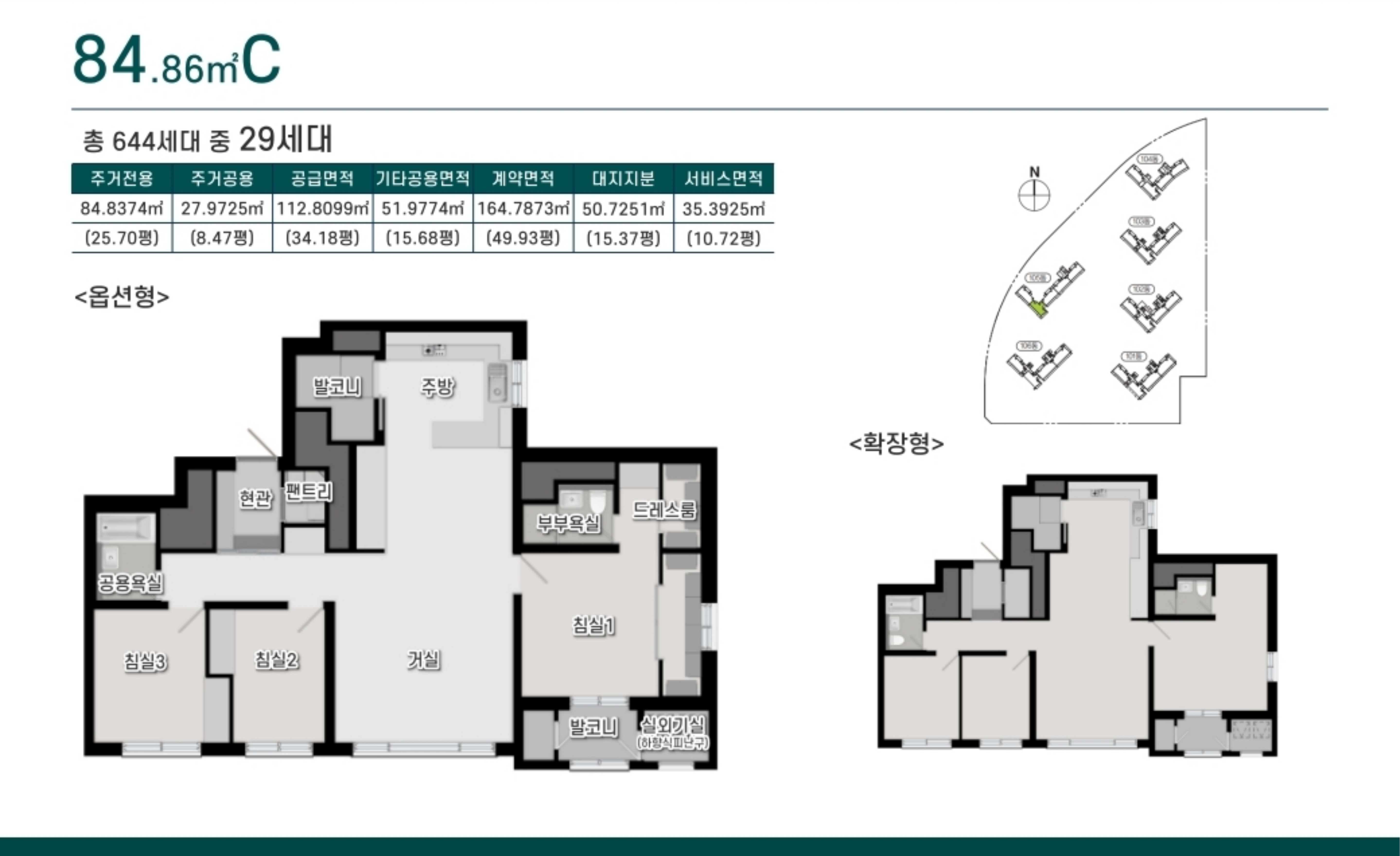 84㎡ 평형은 4베이 구조로 채광과 통풍이 뛰어나며, 발코니 확장과 드레스룸, 팬트리로 공간 활용도가 높습니다.