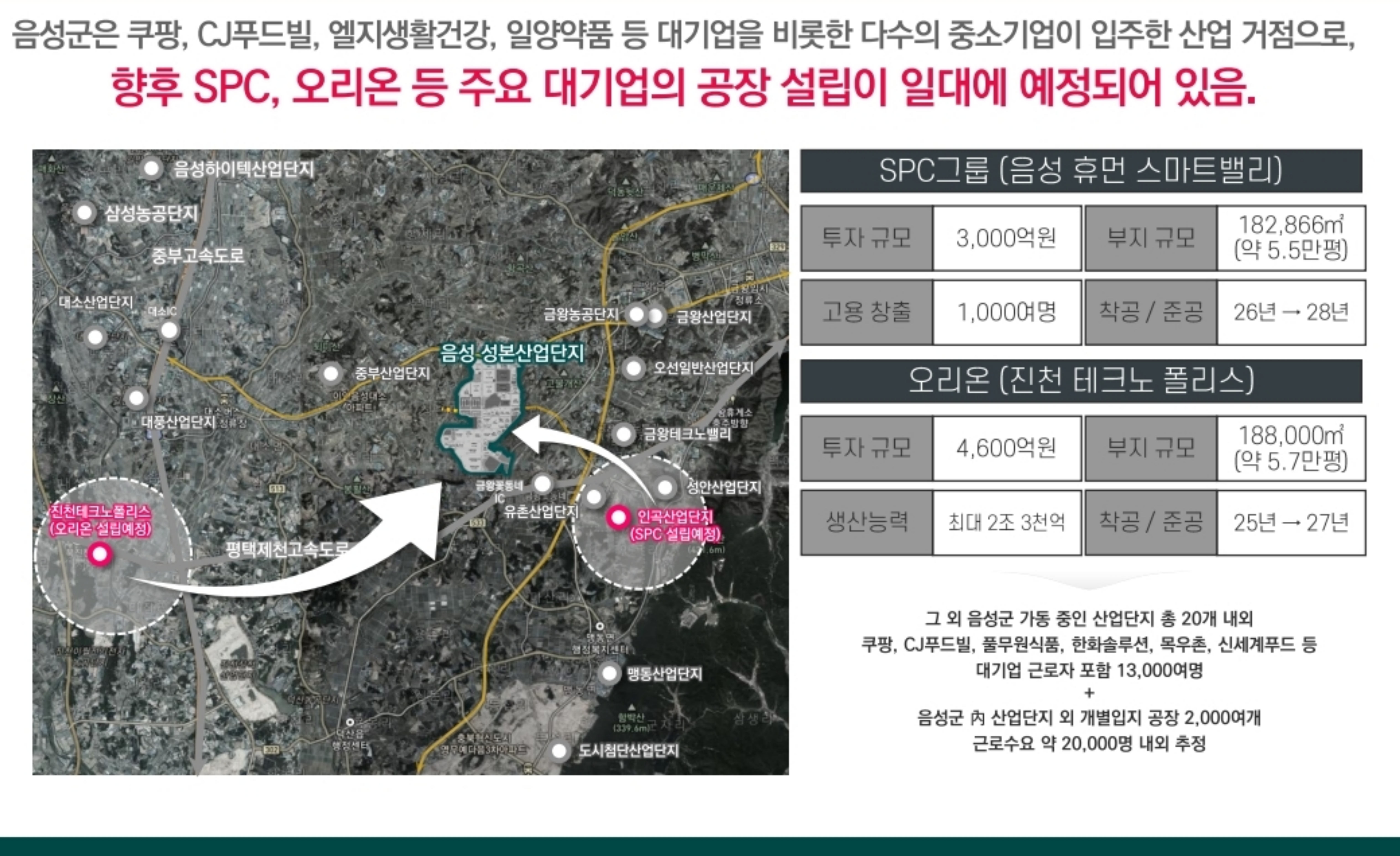 성본산업단지에 CJ, 한화, 풀무원 등 총 33개 업체가 입주해 약 1만 5천여 명이 근무 중입니다.