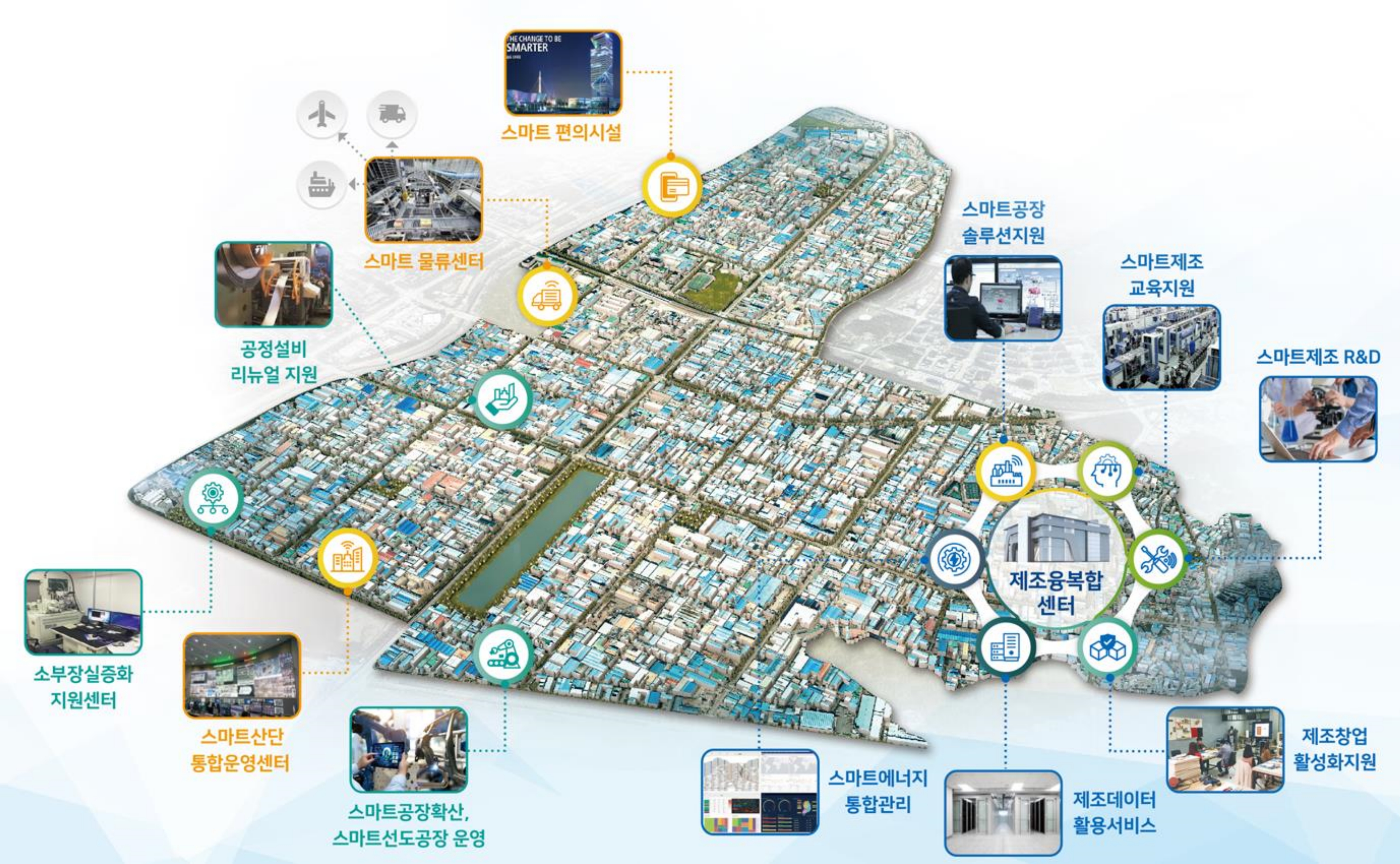 사업 예산은 국비 884억 원, 시비 225억 원, 민자 210억 원 등 총 1,319억 원으로, 현재까지 데이터 기반 통합관제센터 구축, 스마트 제조 혁신, 에너지 자립화 사업 등 다양한 성과를 거두고 있다.
