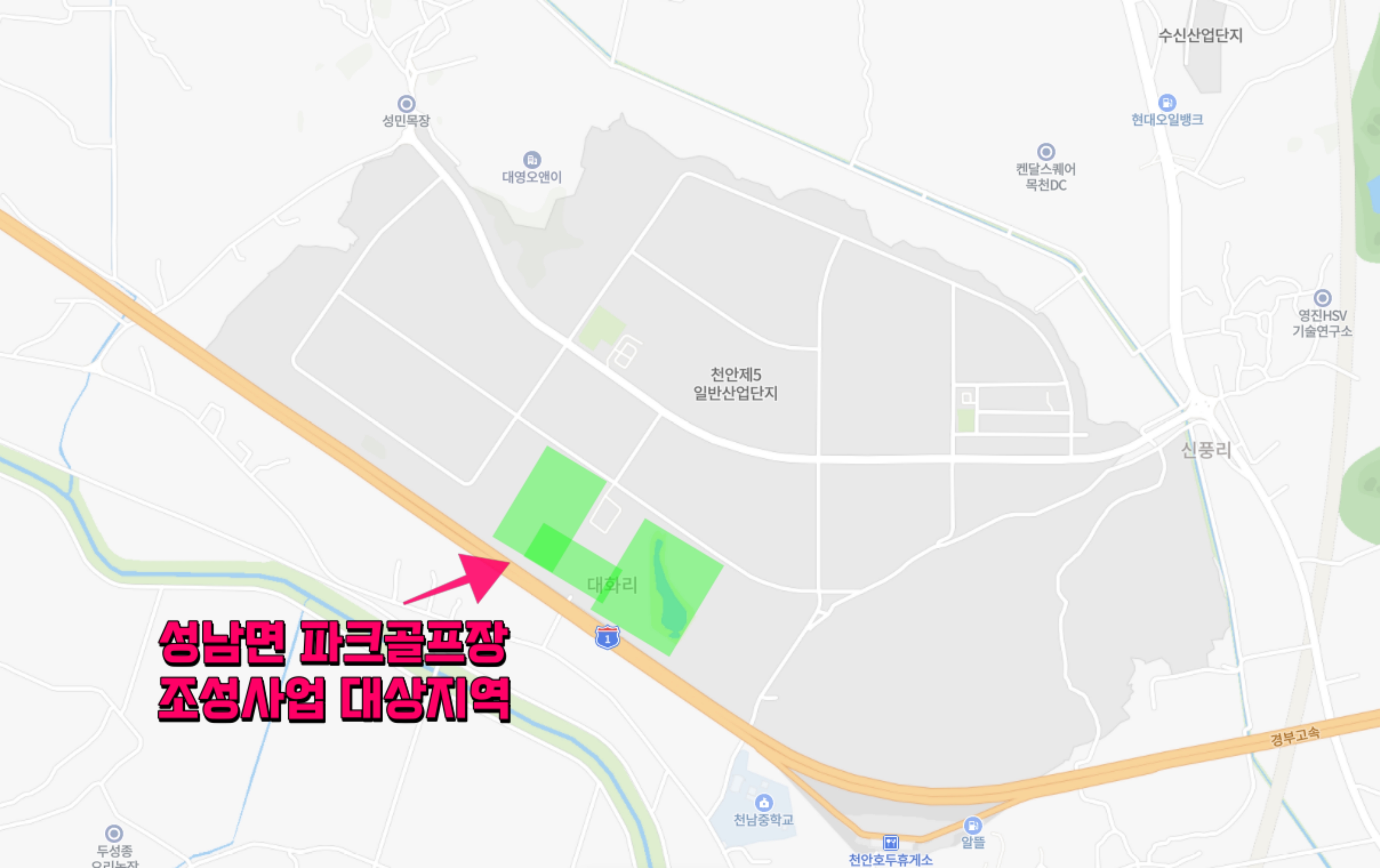 천안시 성남면 제5산업단지 공원부지에 파크골프장 18홀 공모사업 선정