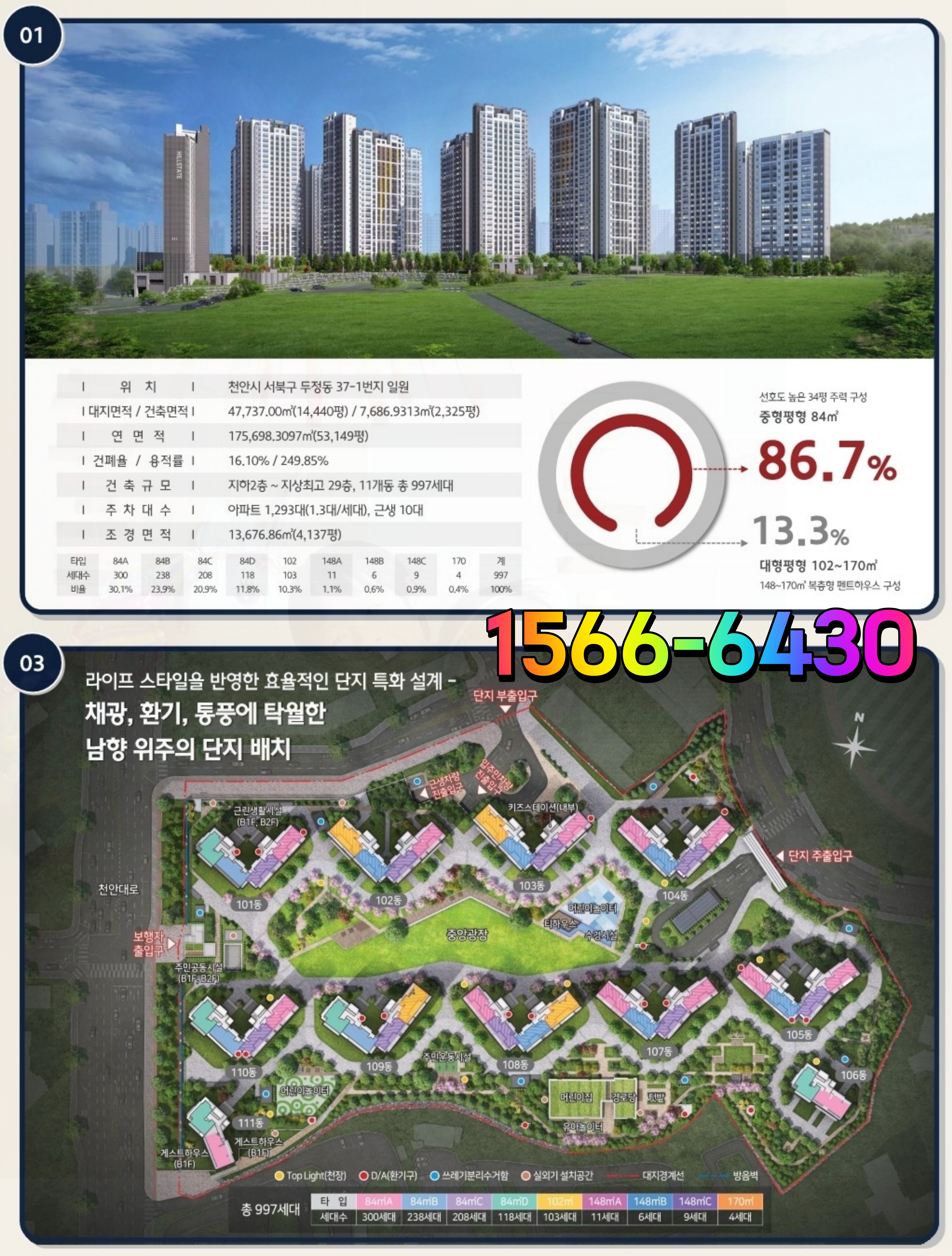 총 공급 세대수는 997세대이고, 주차장은 차량을 1,293대나 주차할 수 있는 넓은 주차 공간을 확보할 계획을 가지고 있습니다.