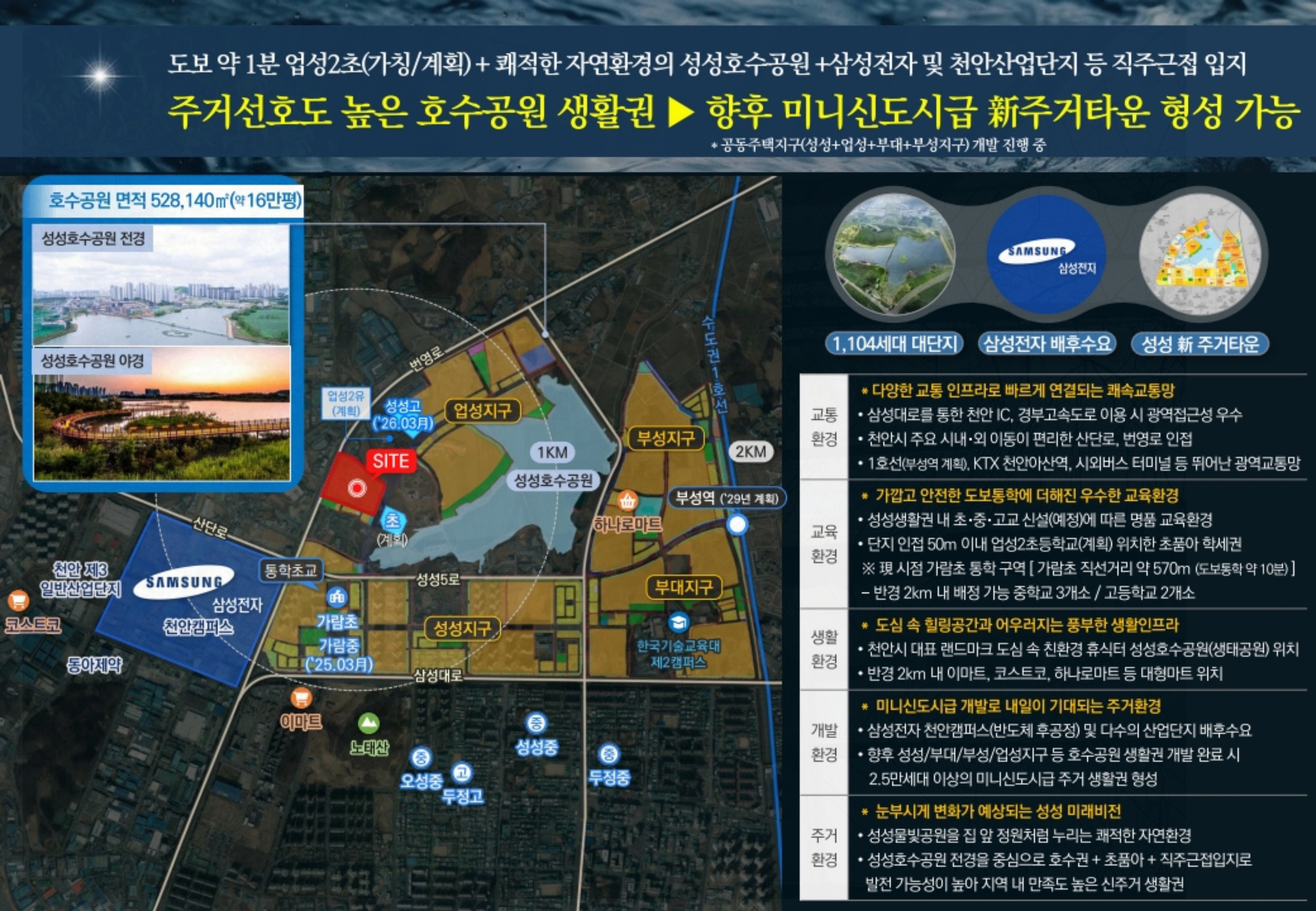 성성호수공원과 인접하여 풍부한 자연환경을 누릴 수 있는 주거 쾌적성이 강조되어 가장 값진 결과물이 만들어질 것 같은데요.