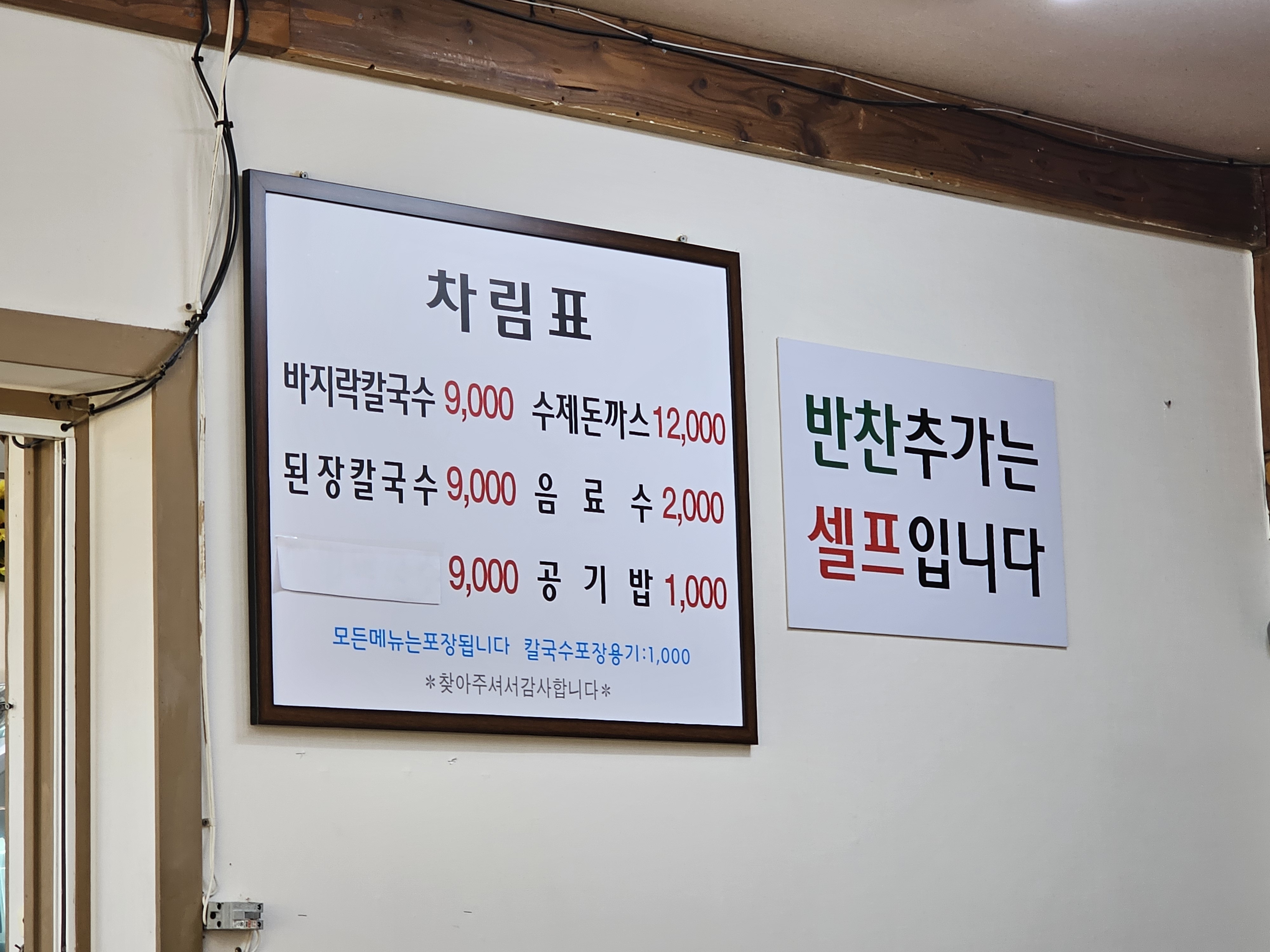 가격은 된장칼국수 9천 원 수제 돈까스 1만 2천 원입니다. 요즘 밥값이 1만 원으로 선택할 수 있는 게 몇 개 없을 만큼 물가가 많이 오르긴 했습니다. 월급은 사실 크게 오르지 않았고, 세금으로 엄청 떼어가는데 말이죠! 참...