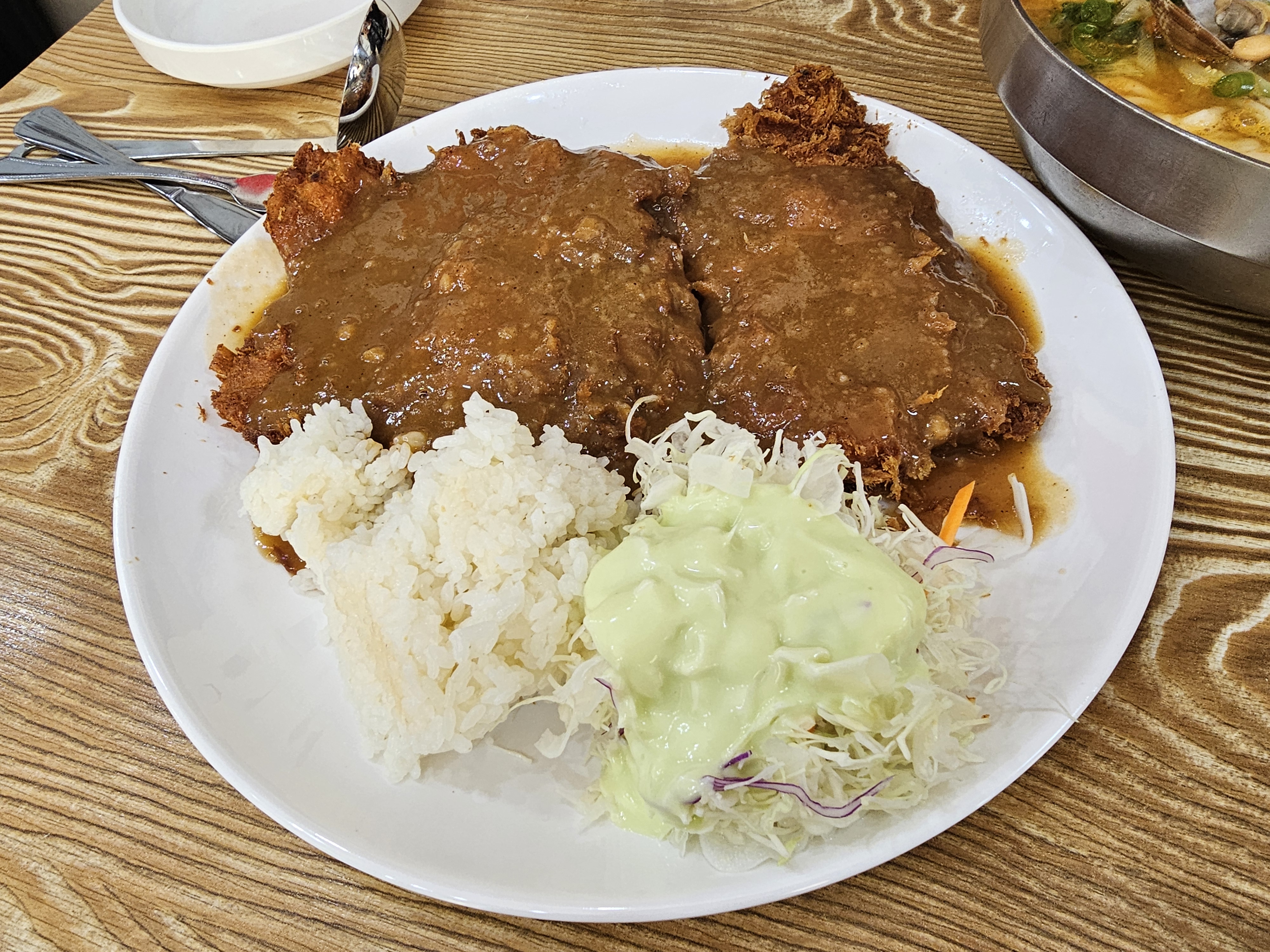 장칼국수를 먹을 때 겉절이를 돈까스는 살짝 느끼함을 달래는데 깍두기가 제격이긴 하더라고요.