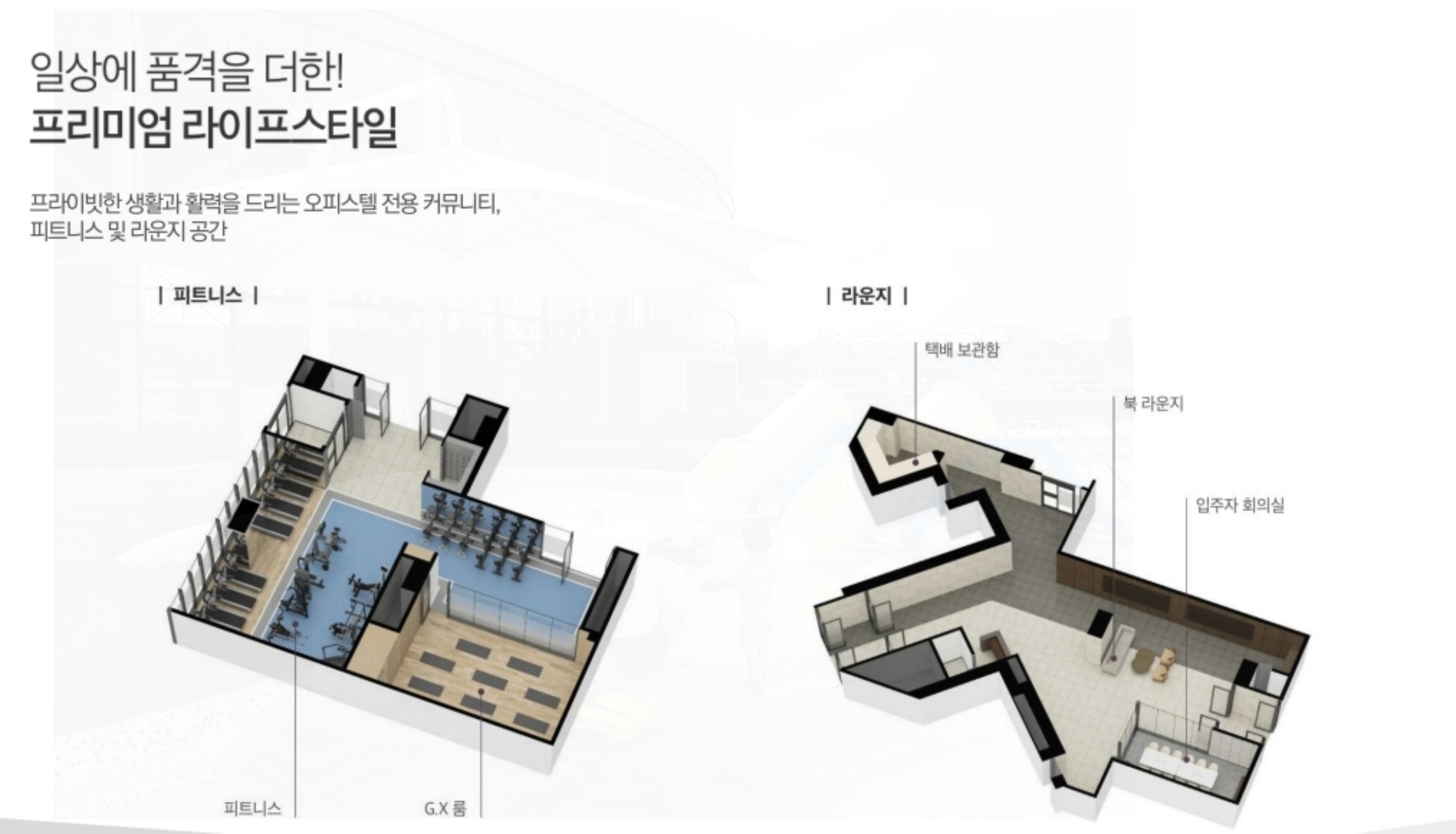 택배 보관함과 북라운지, 입주자 회의실을 비롯해 피트니스와 GX룸까지 조성된답니다.