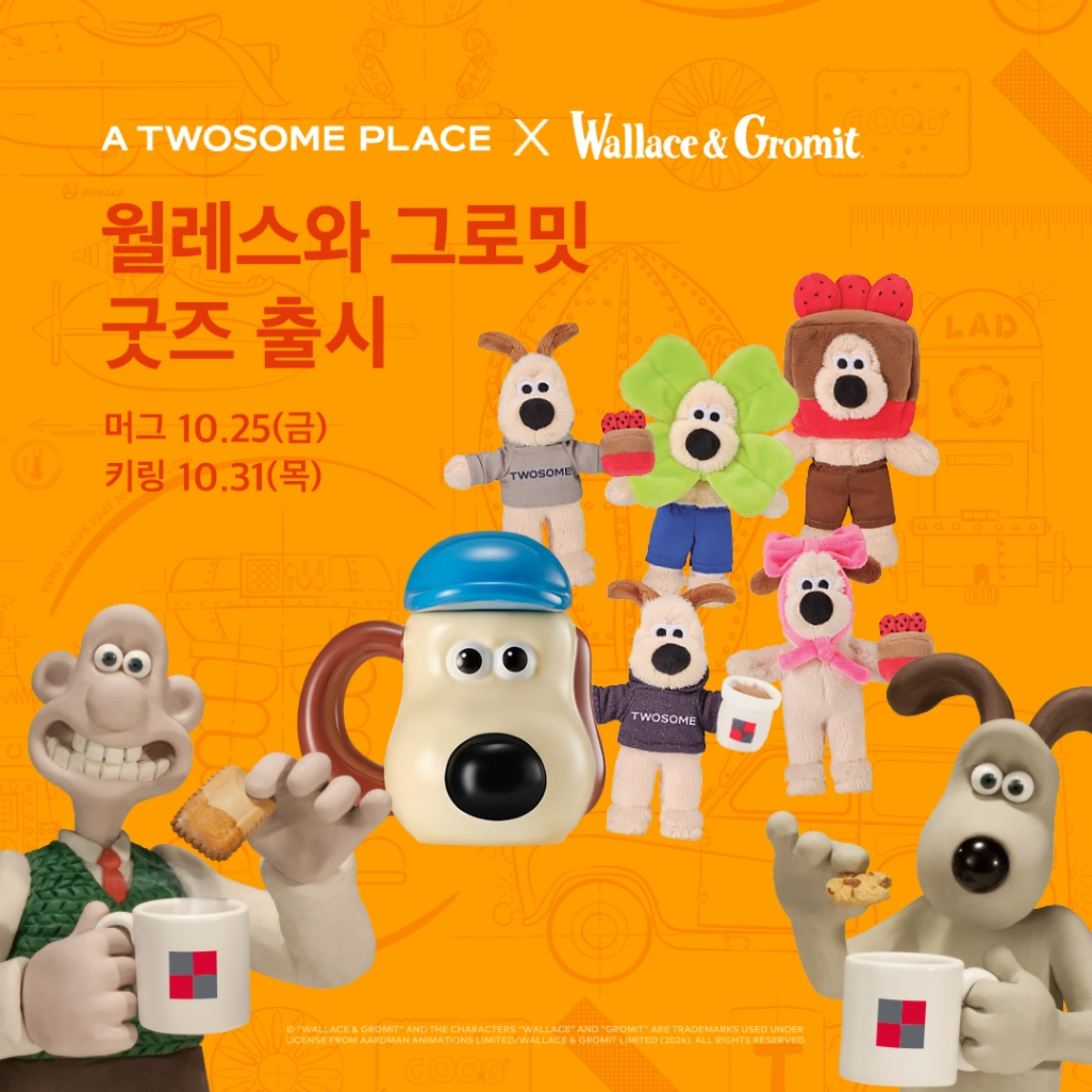 프리미엄 디저트 카페 투썸플레이스가 영국의 대표적인 클레이 애니메이션 시리즈 월레스와 그로밋과 협업한 캐릭터 굿즈를 출시한다고 밝혔다.