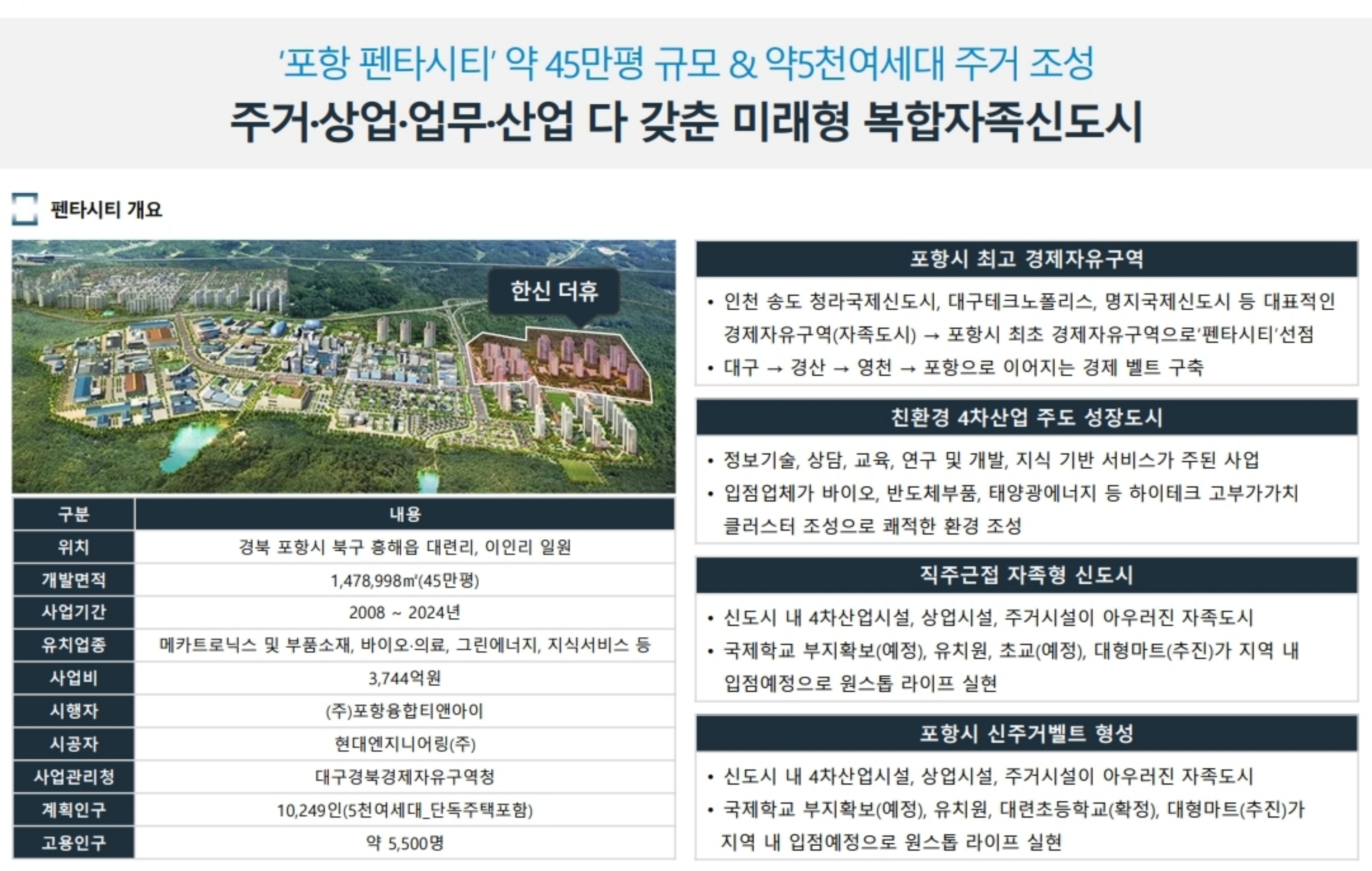 펜타시티가 속한 경제자유구역 지정과 바이오·에너지·첨단 산업 융합 클러스터 구축은 지역 경제에 큰 활력을 불어넣는 경제적 모멘텀이 되고 있습니다.