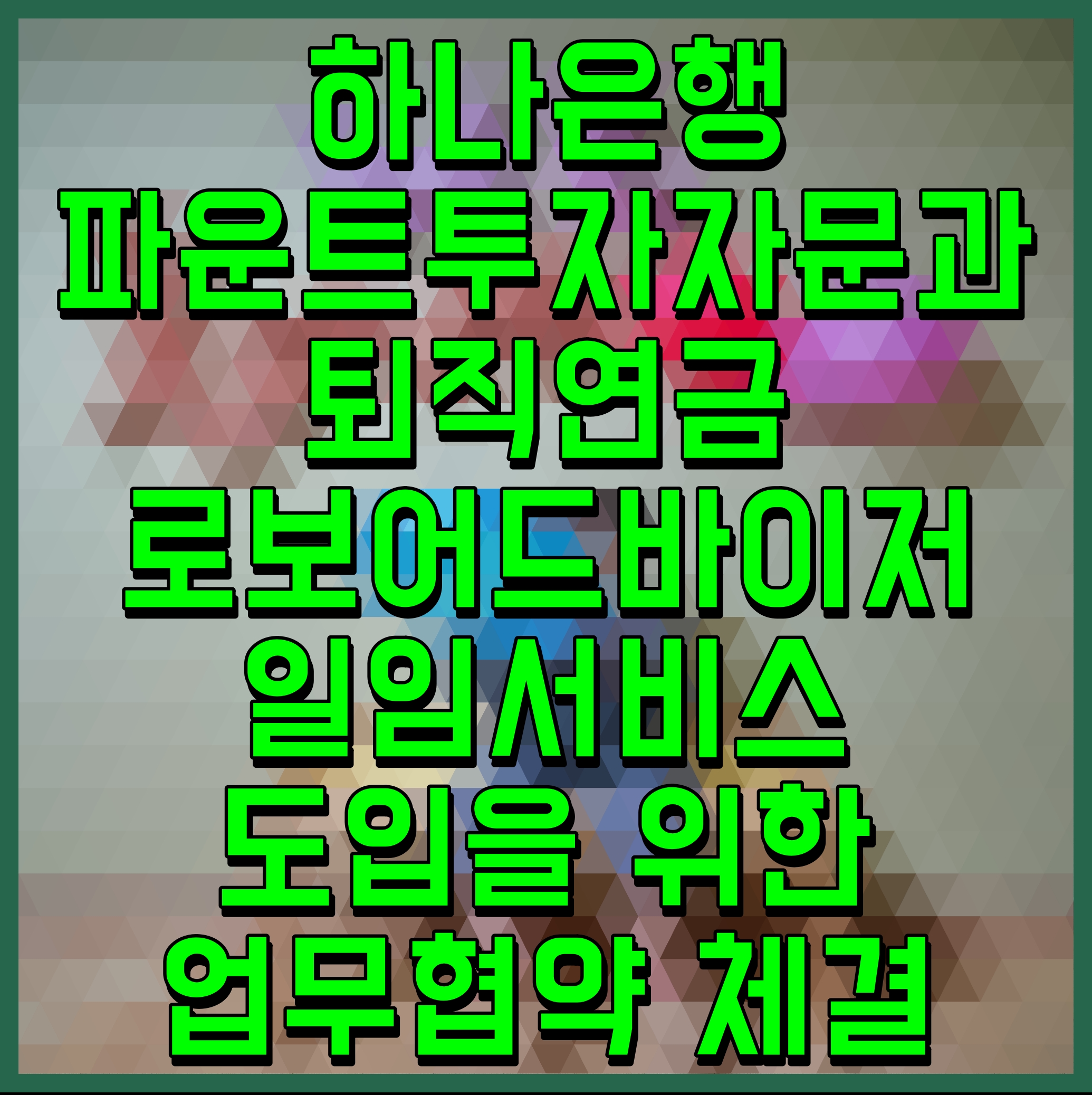 하나은행 파운트투자자문과 퇴직연금 로보어드바이저 일임서비스 도입을 위한 업무협약 체결