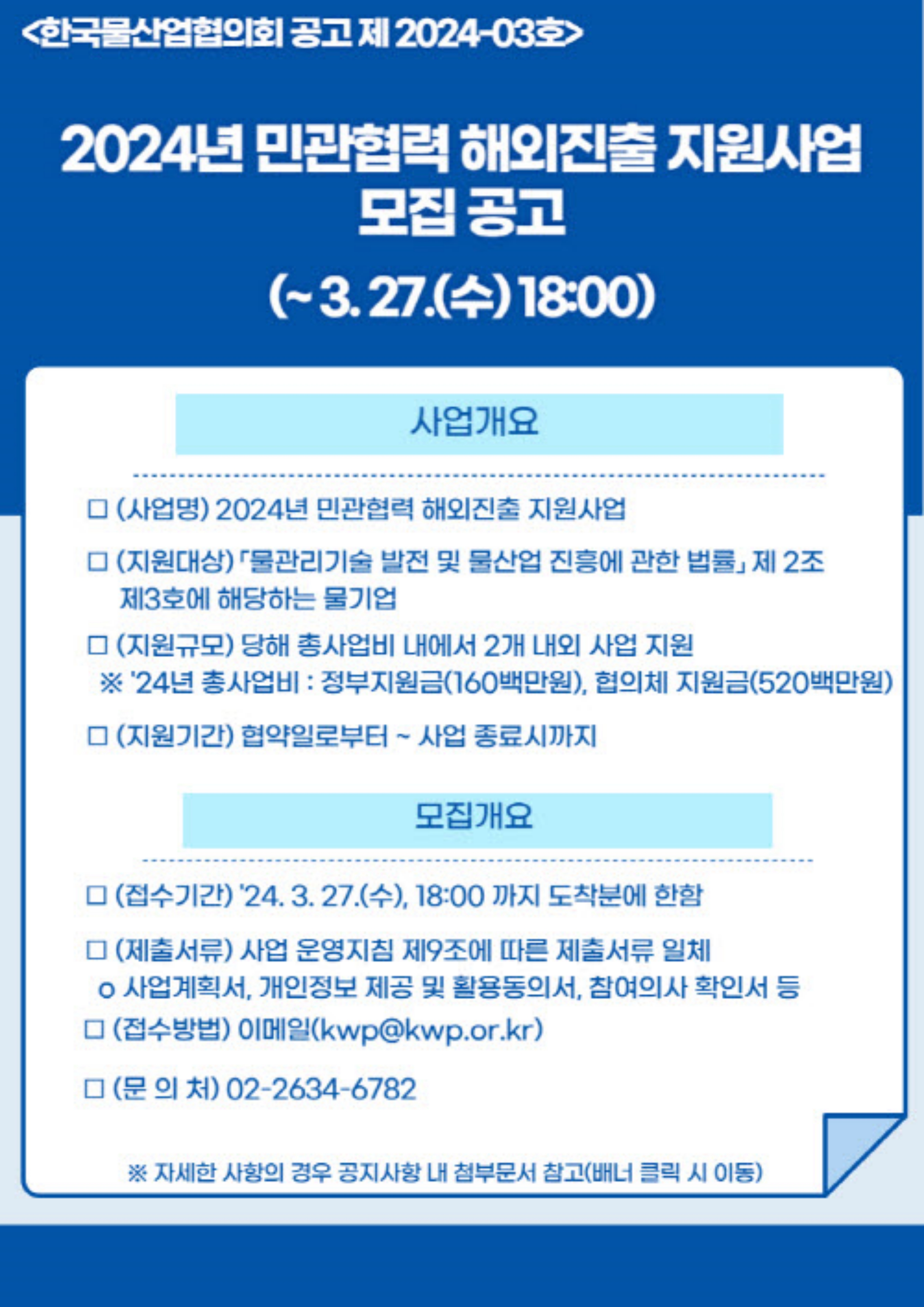 대상사업은 물산업 분야 해외 공사(신규설치·개량), 운영(유지관리) 등 민간투자형 수익사업으로 추진 가능한 사업이며, 기자재 설치공사, 시설 개량공사, 운영관리, 성과기반계약, 수익공유형 사업 등 신청기업의 우수한 제품을 해외에 적용해 직접적으로 해외 실적 및 매출을 달성할 수 있는 사업모델은 모두 해당된다.