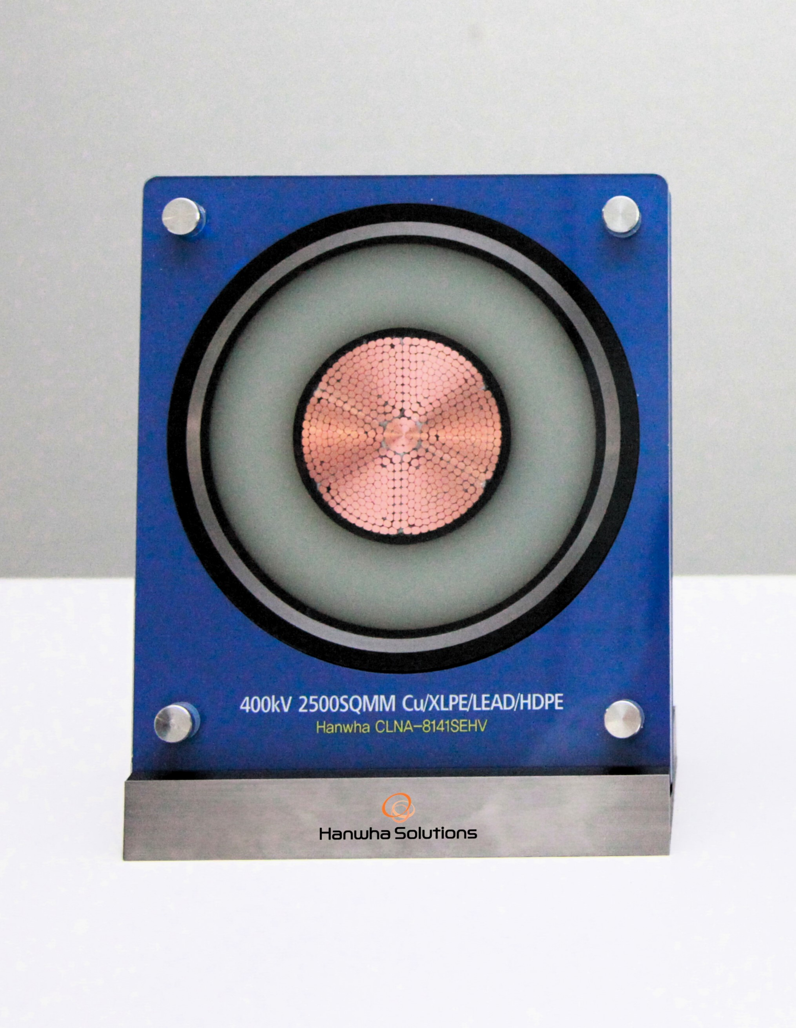 한화솔루션은 국내에서 처음으로 400킬로볼트(kV)급 케이블용 XLPE를 개발해 외국산 제품 대체에 나섰다.