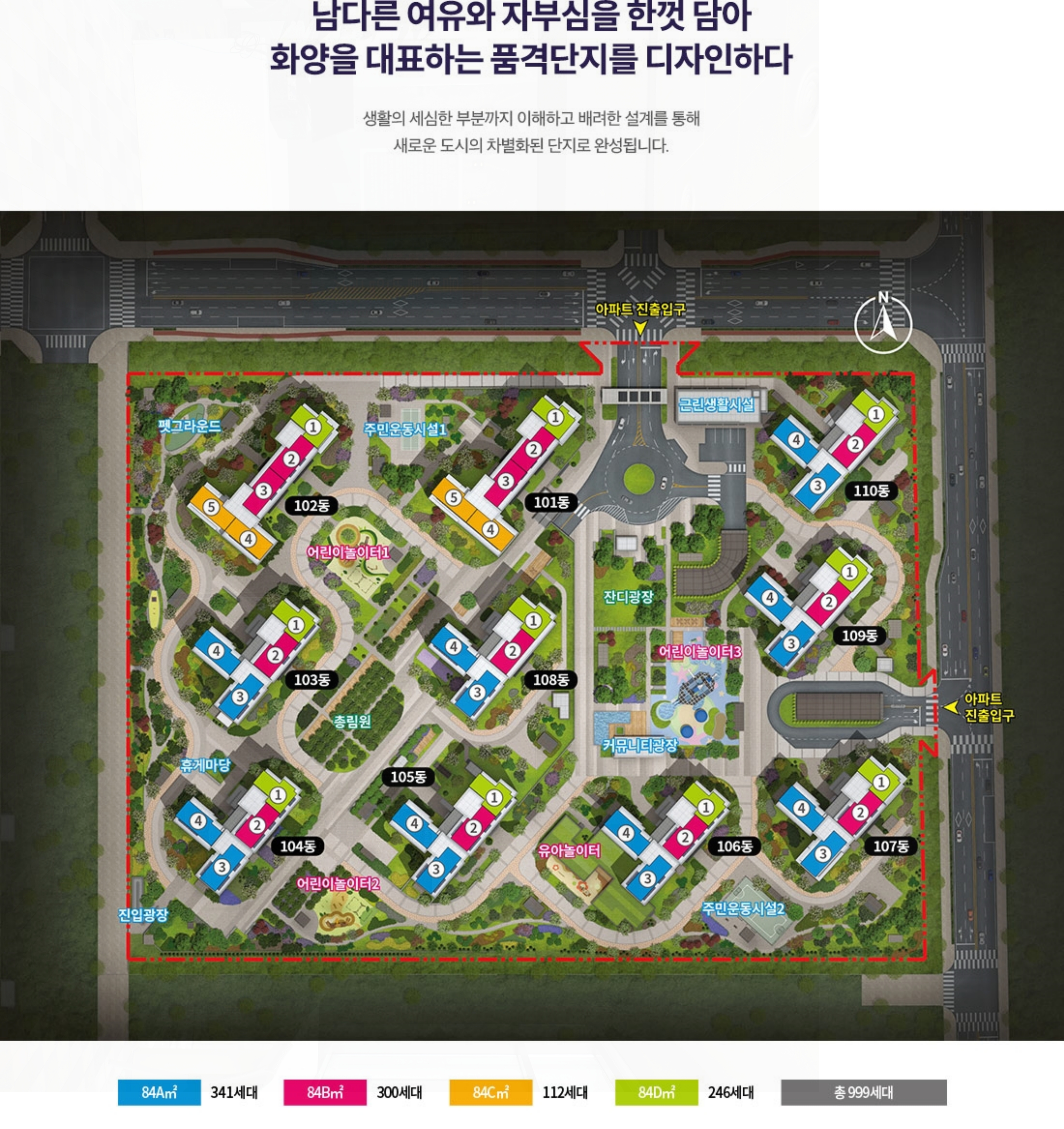 건축규모는 지하 2층부터 지상 29층까지 10개 동 규모로 총 999세대의 대단지로 구성되어 있습니다.