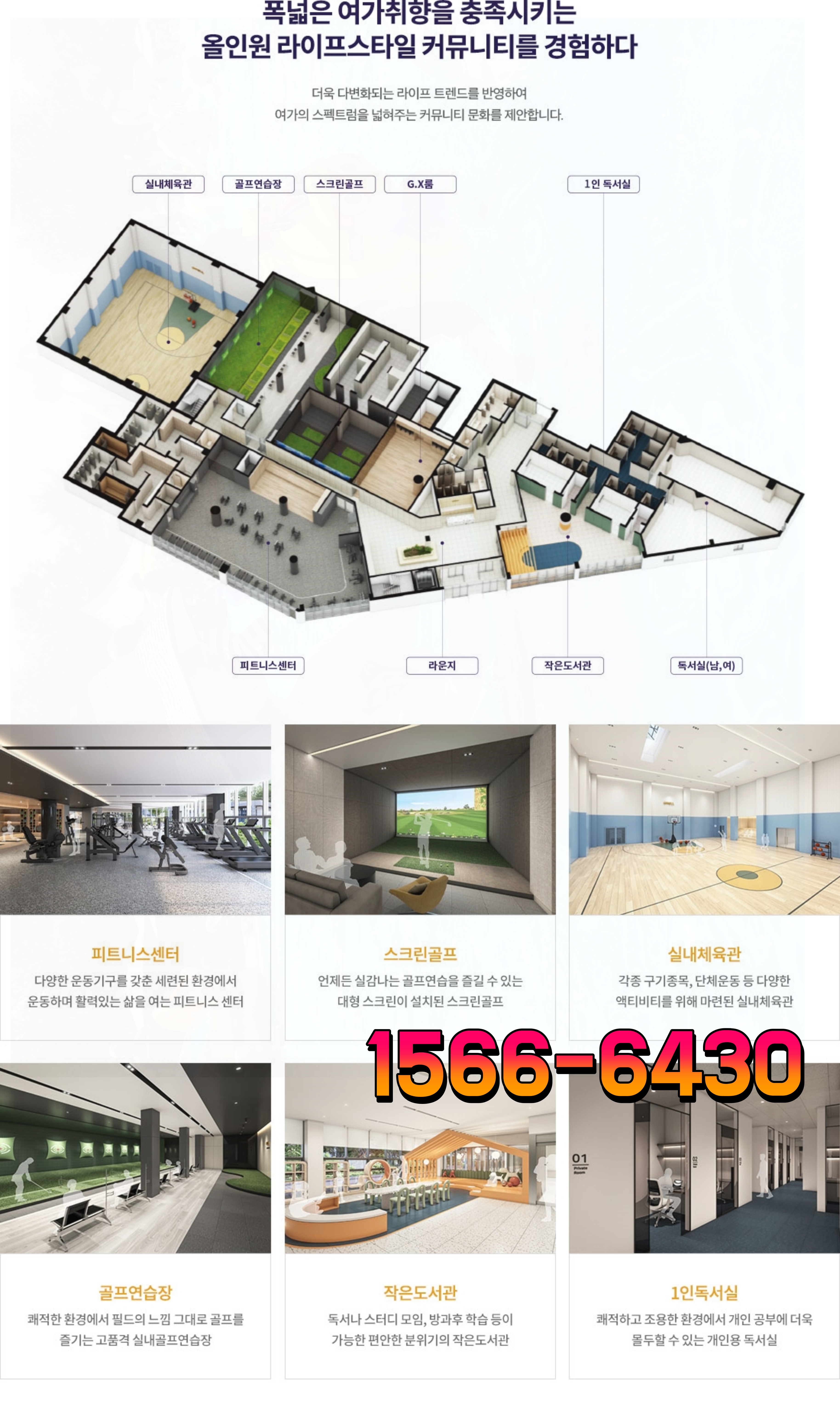 다목적 체육관, 골프연습장, 스크린 골프, GX룸, 피트니스, 사우나, 작은 도서관, 1인 독서실 등 다양한 시설이 마련되어 입주민의 생활 편의를 높일 것입니다.