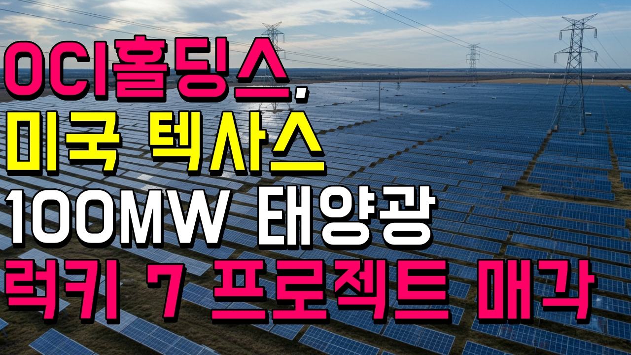 OCI홀딩스는 지난 13일(현지시간) 자사의 미국 태양광 자회사 OCI에너지(OCI Energy)가 사반치 리뉴어블스와 100MW 규모의 '럭키 7 프로젝트' 사업권 매각에 대한 최종 승인 절차를 완료했다고 공식 발표했습니다.