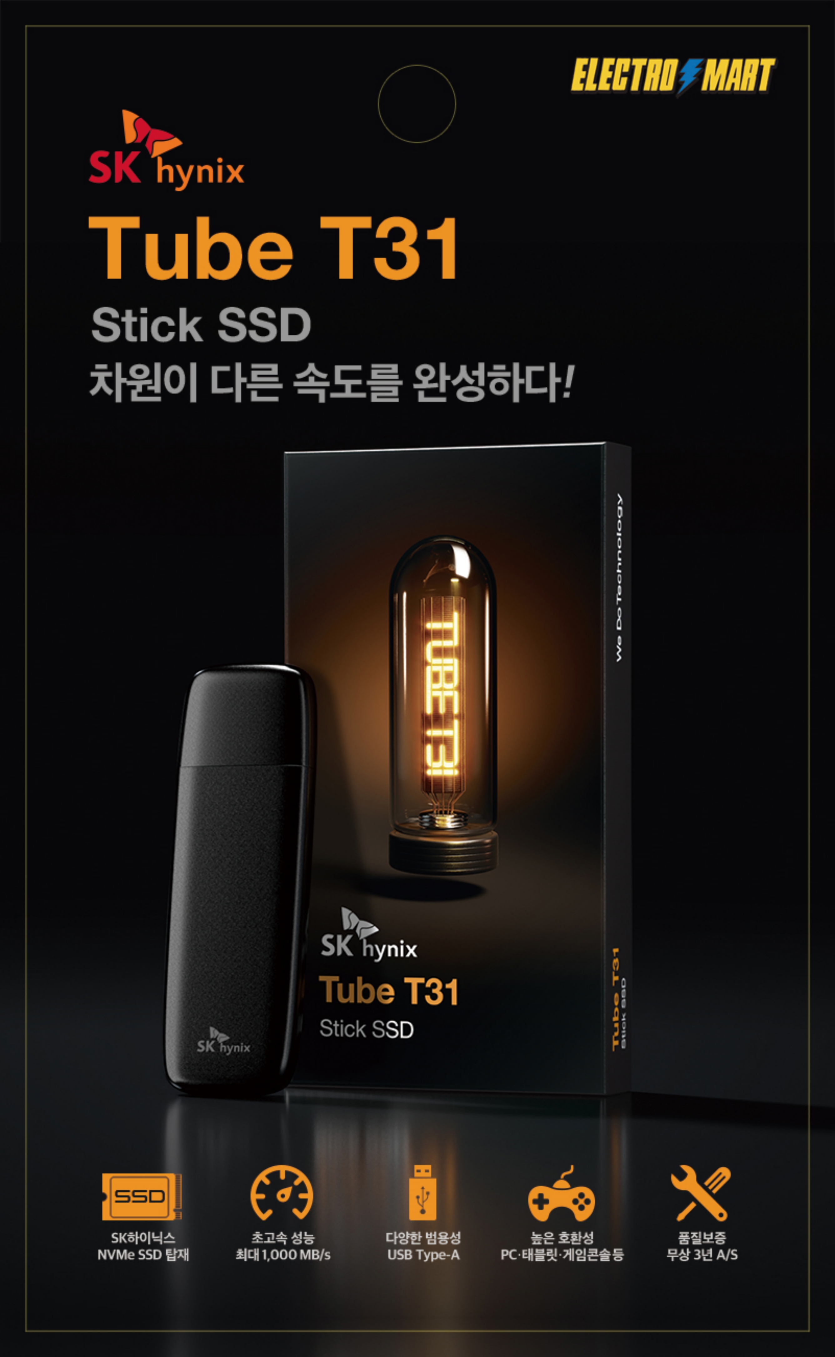 SK하이닉스 스틱형 SSD Tube T31 전국 일렉트로마트 입점 판매
